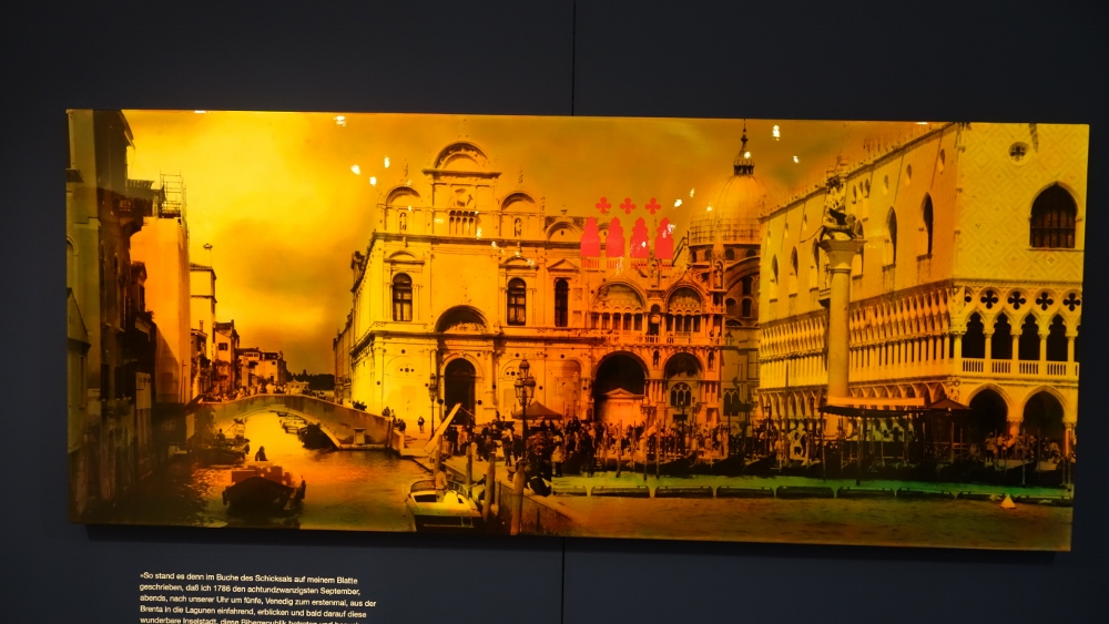 Und sogar das Wasser der Lagunenstadt hat Einzug in Ochsenhausen gehalten. Tilman Krieg hat mit Filmaufnahmen und Tönen aus der Serenissima einen Raum in ein Stück Venedig verwandelt.