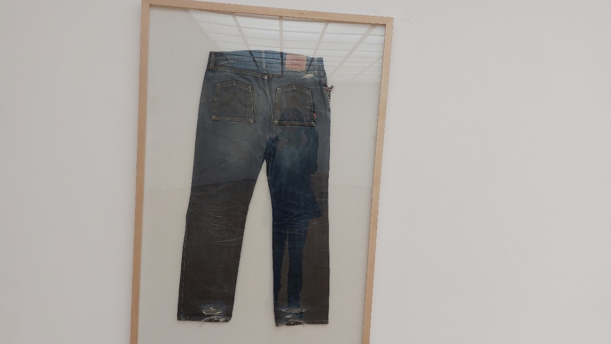 Alltag findet sich bei Barta sogar ehrwürdig zur Kunst erhoben, eingerahmt – eine alte Bluejeans, ebenfalls von ihm selbst getragen, soll man dem Etikett glauben, aber was heißt bei Barta schon glauben. Never lost anything nennt er das Stück, nie etwas verloren. Bei den Hosentaschen am Gesäß? Falsch herum aufgenäht!