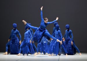 Doch immer wieder dominiert die Masse, die sich behaupten will, aus der sich gelegentlich Anführer herauskristallisieren, die die Richtung angeben. Das kann schließlich zu Kriegsszenen führen, wenn Tänzer mit Masken ihre Individualität verbergen, eintauchen in die Anonymität der Masse, im Gleichmarsch tanzen in Röcken, die an die Gewänder der Samuraikrieger erinnern. Auch hier befreit sich eine einzelne Tänzerin (faszinierend ausdrucksstark Angelina Zuccarini) vom Zwang der Anonymität, verzichtet auf die Maske, bis die anderen ihrem Beispiel folgen. Ob das Ergebnis freilich absolute Freiheit ist, bleibt offen, die Revolte – so der Titel des Balletts -, der Kampf also scheint sich wie ein Gesetz durch die Geschichte zu ziehen.